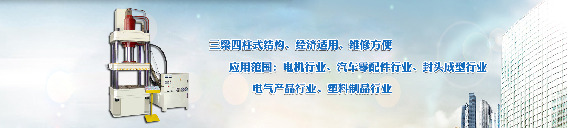 液压机以液体为工作介质,根据帕斯卡原理制成的用于传递能量,来加工金属、塑料、橡胶、木材、粉末等制品。液压机一般由主机、动力系统及液压控制系统组成。按结构形式现主要分为:四柱式、单柱式(C型)、卧式、立式框架、万能液压机等。四柱液压机适用于可塑性材料的压制工艺可分为四柱两梁液压机、四柱三梁液压机、四柱四梁液压机。单柱液压机的机身为C型单臂式结构,液压系统位于机身内适用于金属制品拉伸、成型及压制,亦可加工非金属材料,粉末冶金制品的压制。结构刚性好,导向性能好,速度快,工作精度高。