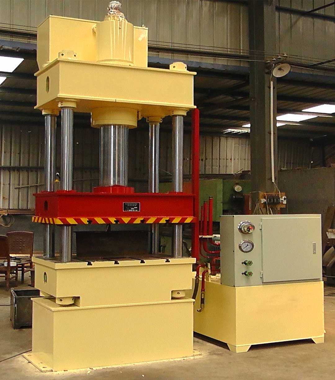 2、液压机工作完毕,应切断电源、将压机液压杆擦试干净,加好润滑油,将模具、工件清理干净,摆放整齐。